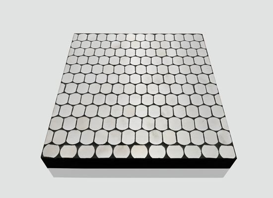Tic wear liners comprise of Tic insert, moulded in a high tensile strength natural rubber matrix, and mounted on steel backing plates.
